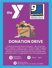 Join us on Saturday, October 4th from 10:00 AM – 2:00 PM at the Fayette County Family YMCA (100 Civic Dr, Washington Court House, OH 43160) for a special Goodwill Donation Drive!